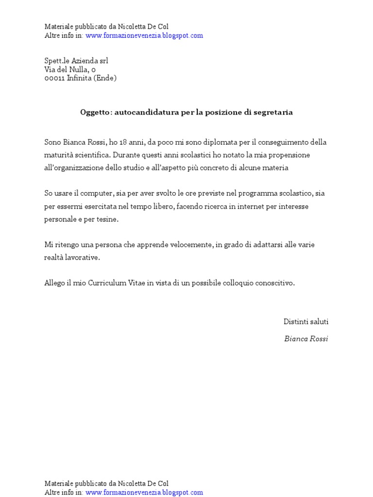 Esempio di lettera di presentazione per un'autocandidatura ...