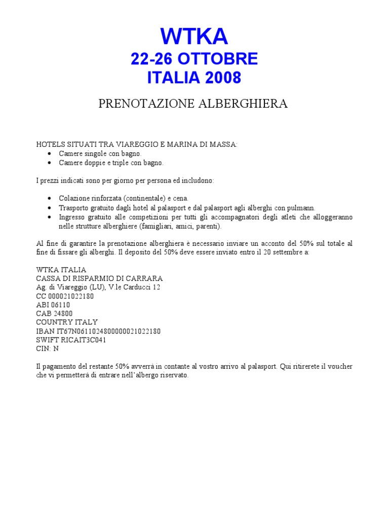 Lettera prenotazione albergo in italiano