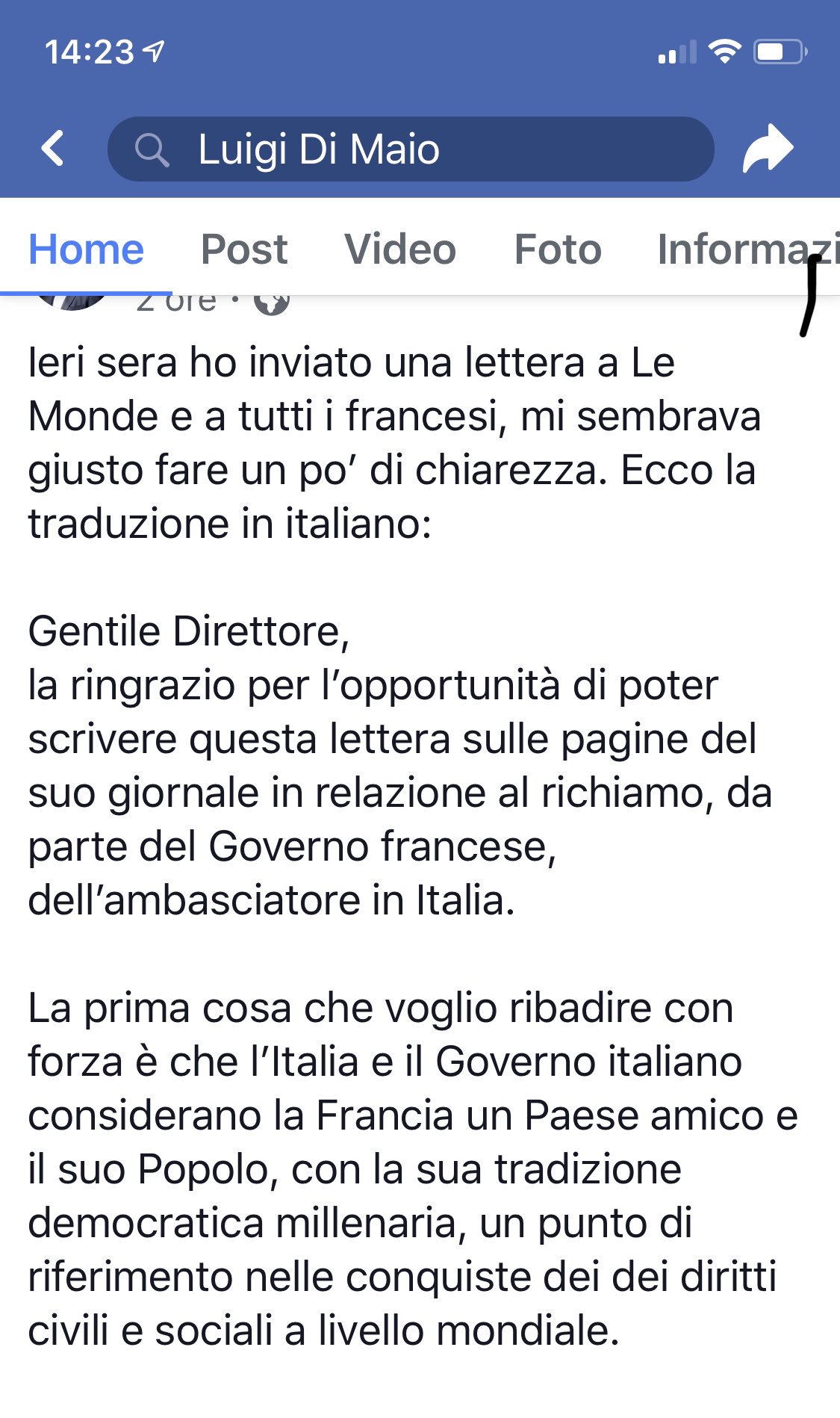 Lettera in francese a un amico