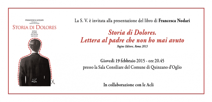 Storia di Dolores. Lettera al padre che non ho mai avuto di ... May 13, 2013 ... Ho letto con interesse un bel libro appena uscito : Storia di Dolores Lettera al padre che non ho mai avuto di Francesca Nodari (edizione ...