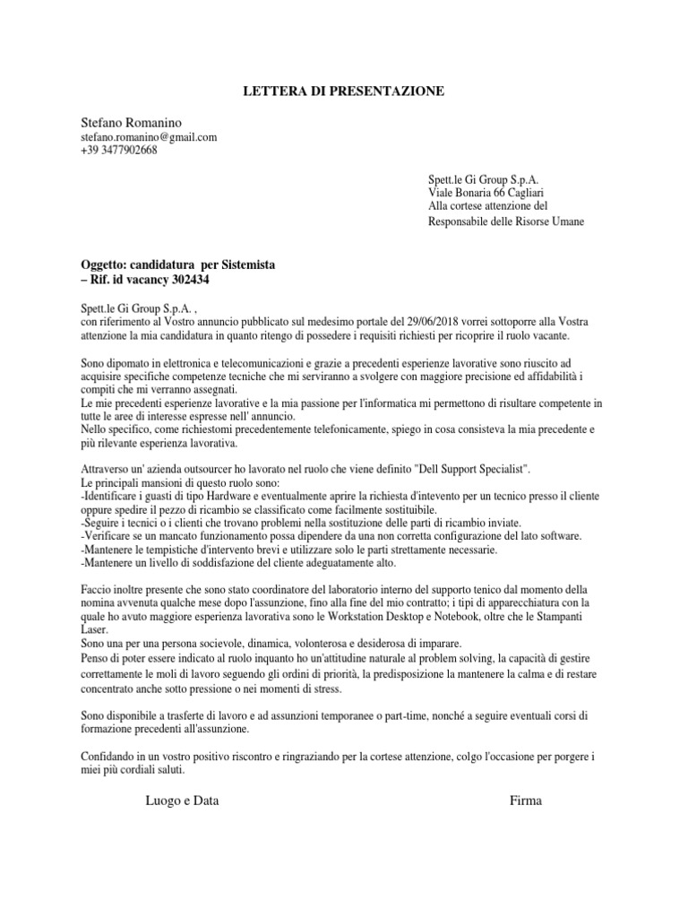 Lettera Di Presentazione in Risposta Ad Un Annuncio | PDF - Scribd Lettera Di Presentazione in Risposta Ad Un Annuncio DI LAVORO. Lettera Di Presentazione in Risposta Ad Un Annuncio. Caricato da Stefano Romanino. 0 valutazioni Il 0% ha trovato utile questo documento (0 voti) ... LETTERA DI PRESENTAZIONE. Stefano Romanino stefano.romanino@gmail.com +39 3477902668.